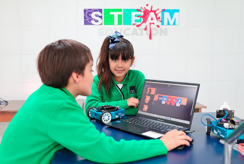 En el CEL, el enfoque STEAM (Ciencia, Tecnología, Ingeniería, Arte y Matemáticas) se implementa en todos los niveles educativos, promoviendo un aprendizaje holístico y conectado con el mundo real. Permite a los estudiantes desarrollar habilidades interdisciplinarias fomentando el pensamiento crítico, creativo y analítico. A través de proyectos colaborativos, aprenden a resolver problemas complejos de forma práctica y a trabajar en equipo, preparándose para un futuro en el que estas competencias son altamente valoradas tanto en el ámbito académico como laboral.